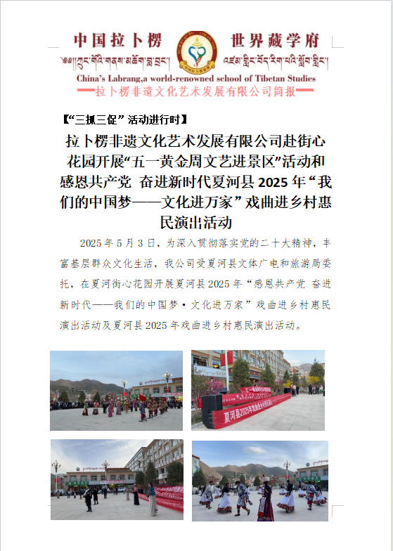 夏河县拉卜楞非遗文化艺术发展有限公司赴街心花园开展五一黄金周文艺进景区活动和感恩共产党 奋进新时代夏河县2025年“我们的中国梦——文化进万家”戏曲进乡村惠民演出活动
