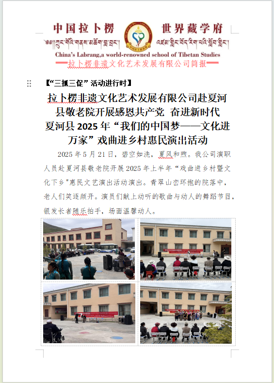 夏河县拉卜楞非遗文化艺术发展有限公司赴夏河县敬老院开展感恩共产党 奋进新时代 夏河县2025年“我们的中国梦——文化进万家”戏曲进乡村惠民演出活动