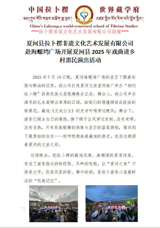 2025年7月19日开展夏河县“我们的中国梦——文化进万家”戏曲进乡村惠民演出
