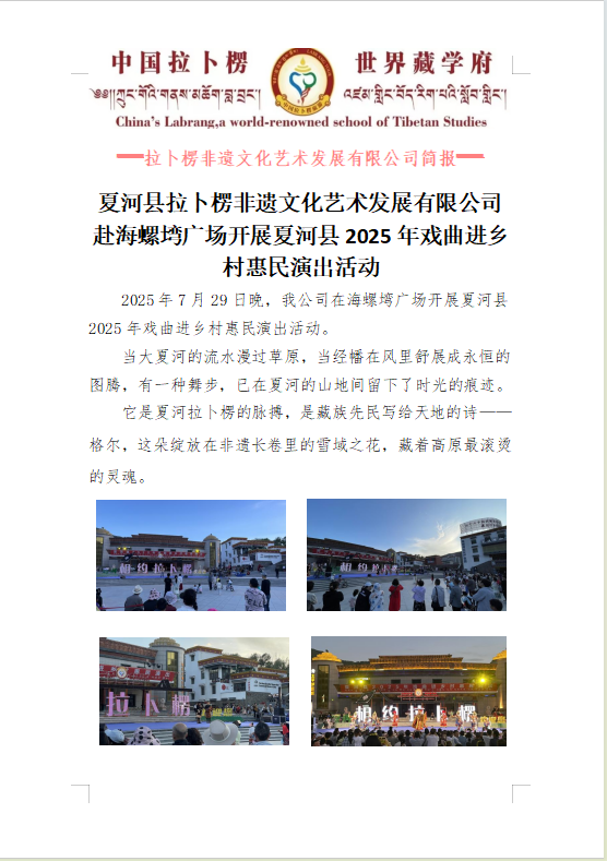 2025年7月29日晚,我公司在海螺塆广场开展夏河县2025年戏曲进乡村惠民演出活动。
