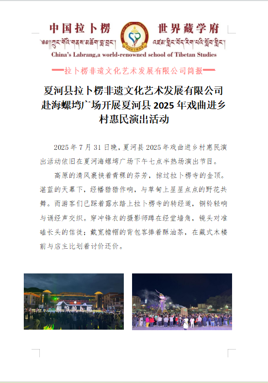 2025年8月01日开展夏河县“我们的中国梦——文化进万家”戏曲进乡村惠民演出