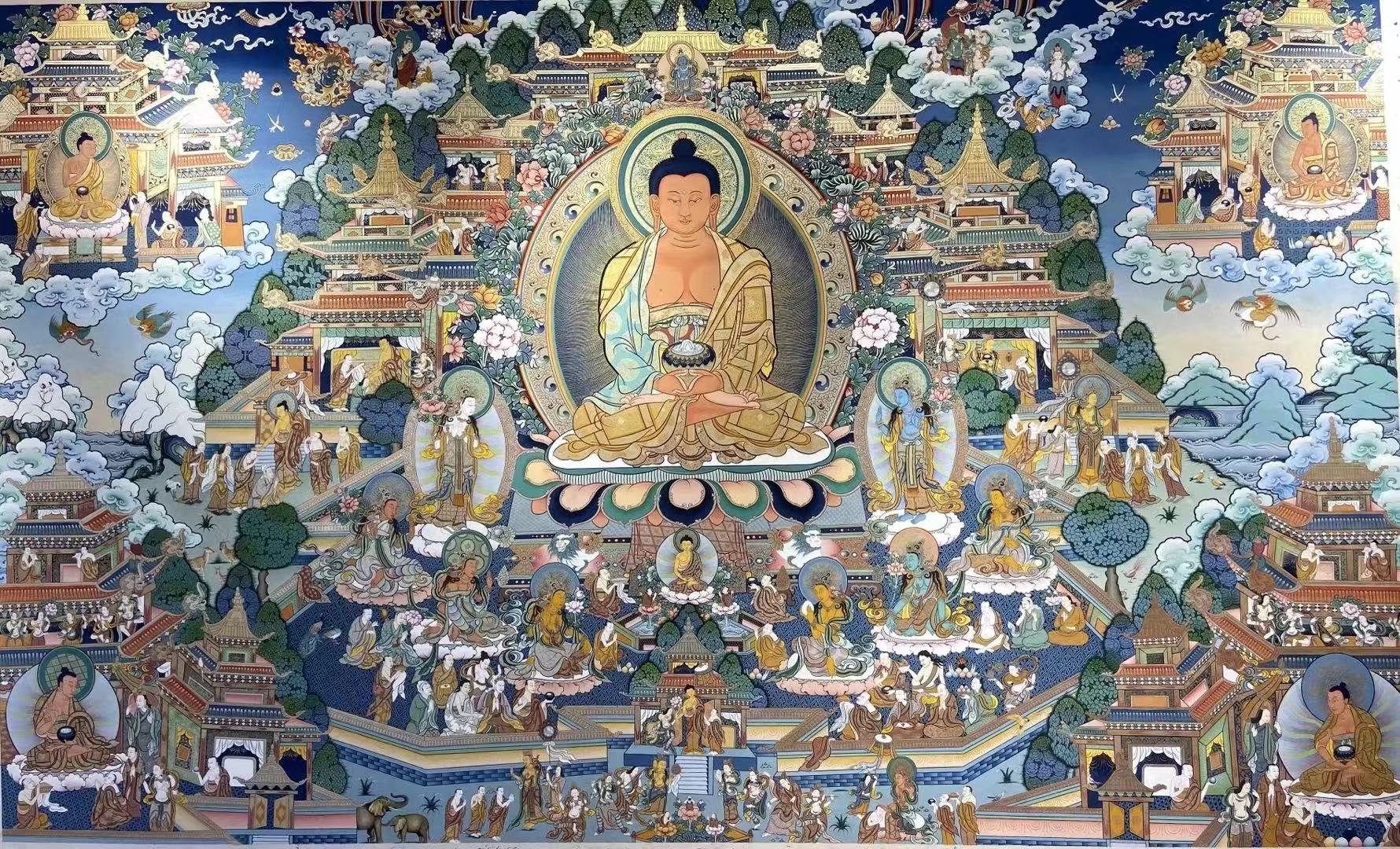 阿弥陀佛,又名无量佛、无量光佛、无量寿佛,是西方极乐世界的教主,是汉传佛教中的信仰主流之一。阿弥陀佛,不是由梵语而来,是阿弥陀婆耶或阿弥陀庾斯的简化。据大乘经记载,阿弥陀佛在过去久远劫时曾立大愿,建立西方净土,广度无边众生,成就无量庄严功德,为大乘佛教所广为崇敬和弘扬。阿弥陀佛是诸佛之一,他的名号“阿弥陀”,其意义依据梵文和佛典,有通义和别义两种。阿弥陀,梵语译为无量,无量是阿弥陀的根本义。阿弥陀,意义为无量光,无量寿。佛的光明横遍十方;佛的寿命竖穷三际。此表一切诸佛的共德。鸠摩罗什译本《阿弥陀经》说,因为他寿命无量、光明无量,故名为阿弥陀。