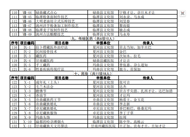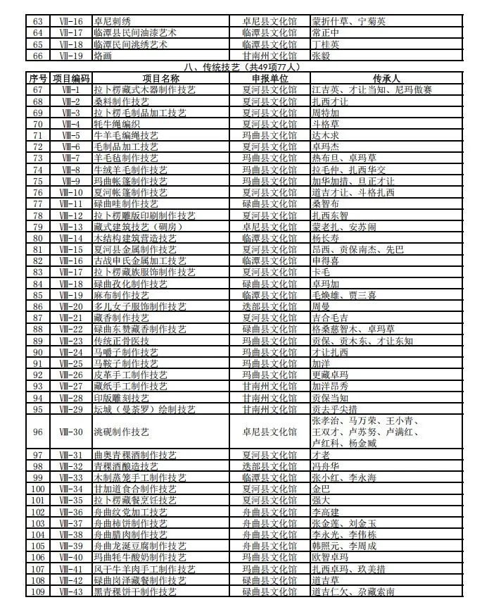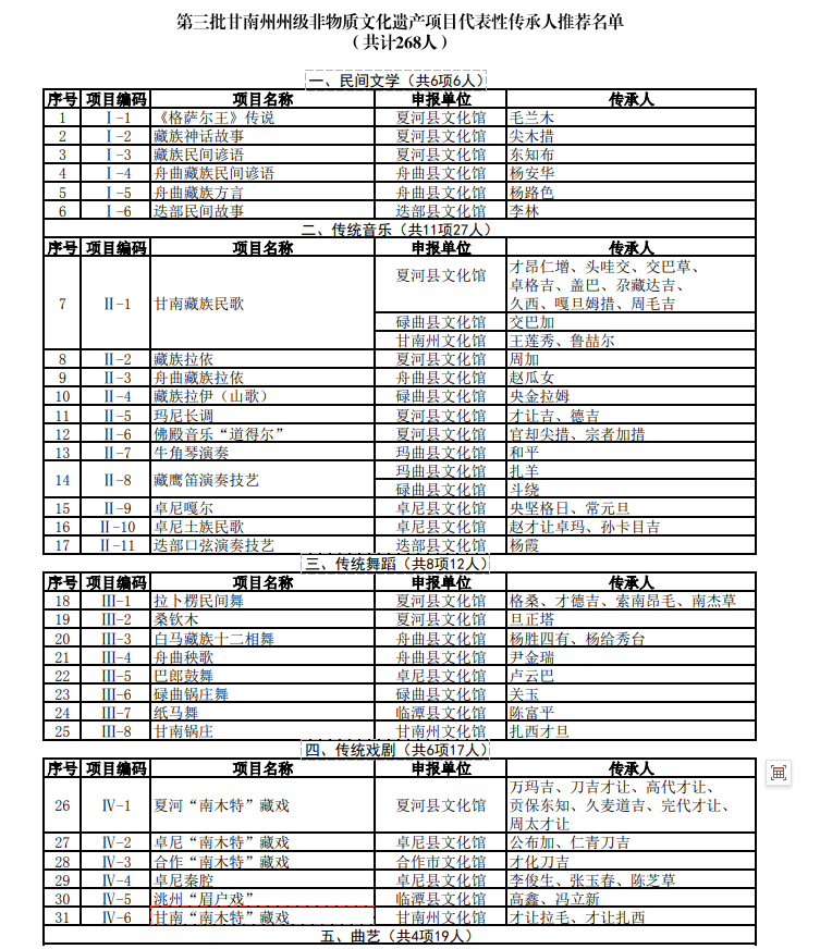 附件:第三批甘南州州级非物质文化遗产项目代表性传承人推荐名单